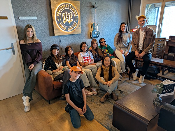 Der Höhepunkt folgte am dritten Tag: Es ging nach Maur ins Tonstudio Powerplay, wo Reto Muggli und Cyrill Camenzind die jungen Musikerinnen und Musiker empfingen. Nach einer Studioführung wurden Instrumente eingespielt – Klavier, Akkordeon, Geige und Percussion – bevor die Jugendlichen nacheinander ans Mikrofon traten. Für viele war das eine echte Mutprobe. Doch mit jeder Aufnahme wuchs das Selbstvertrauen – und die Stimmung wurde immer ausgelassener.